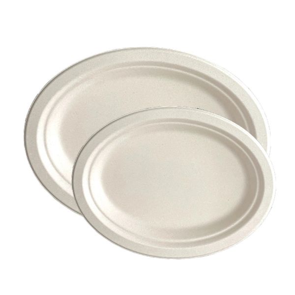 Compostable Sugarcane Bagasse Oval Pulp Packaging Oval Food Plates Images |